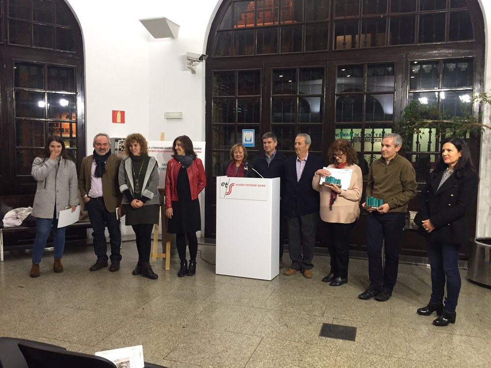 El martes 29 de noviembre tuvo lugar la entrega de los Premios del Segundo Certamen Literario Espíritu de la Alhóndiga, que este año ha estado patrocinado por Euskal Trenbide Sarea-Red Ferroviaria Vasca. La estación Bilbao-Atxuri fue el escenario en el que se desarrolló el acto, lugar idóneo para premiar a los escritores seleccionados entre los más de medio centenar que enviaron sus relatos. Para ellos, los viajes en tren, andenes y estaciones, se convirtieron en espacios en donde ubicar sus recuerdos e imaginación.